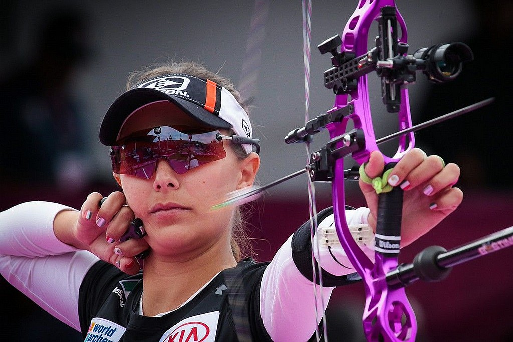 Bilden kommer från Bågskyttebilder å Facebook. Bilden är tagen på Tavel SM i Motala 2017. På bilden syns långbågen med aluminiumpil.